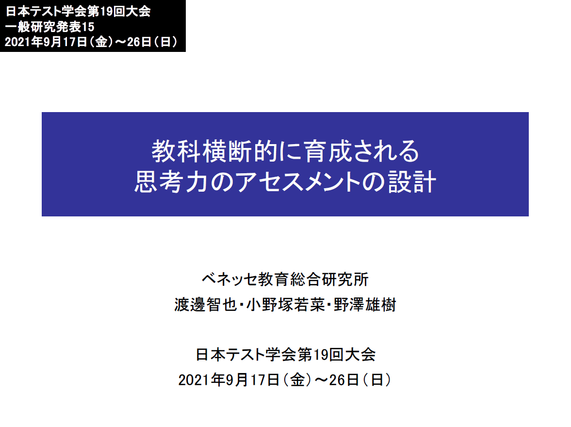 学会発表報告「教科横断的に育成される思考力のアセスメントの設計」@日本テスト学会第19回大会
