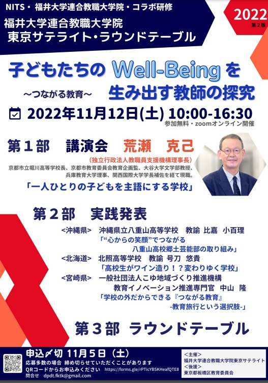 NITS・福井大学連合教職大学院・コラボ研修 福井大学連合教職大学院 東京サテライト・ラウンドテーブル 「子どもたちのWell-Beingを生み出す教師の探究 −つながる教育−」