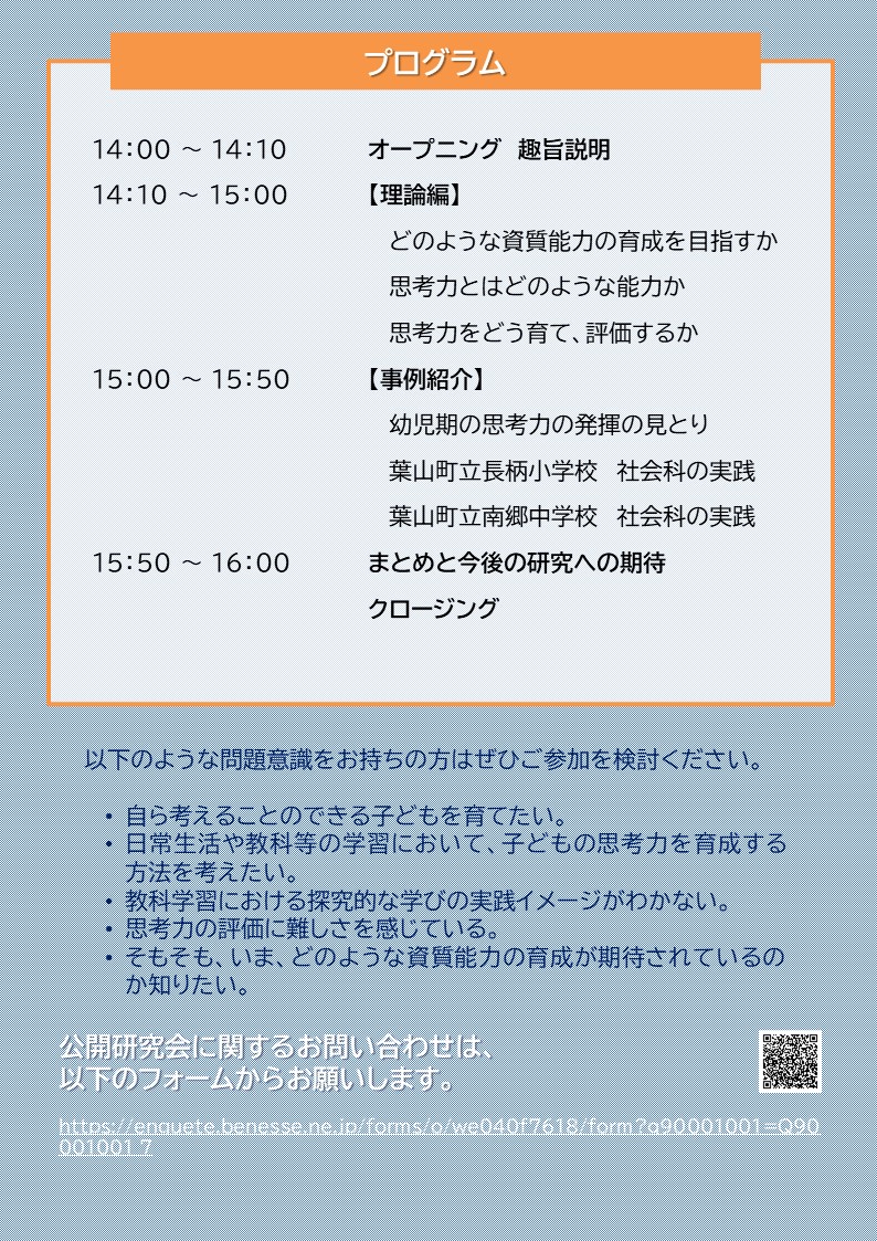 思考力育成研究プロジェクトの公開研究会のご案内です。