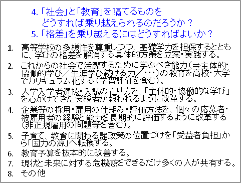 問い:①未来に学びに必要なことは何か②そのために誰が何をすべきか