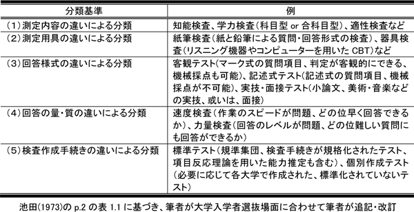 表1 大学入学者選抜場面における測定道具の分類