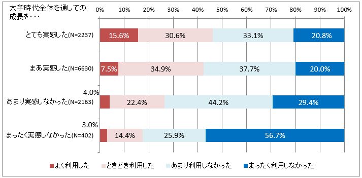 図12.大学時代の成長実感×「大学内の就職サポートの利用状況」(若手層)