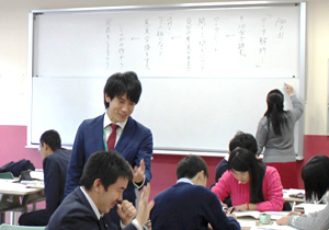 授業は、小林慎一先生、小林香奈子先生、島津先生の3人のチーム・ティーチングで行うが、説明担当、机間巡視担当などの役割は決めず、臨機応変に生徒に対応する。