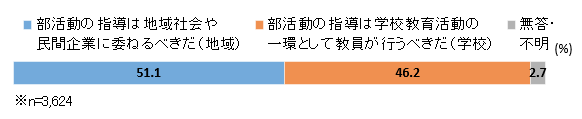 1.部活動の指導は、地域社会や民間企業に委ねるべきだ(以下「地域」)