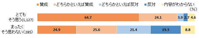 「とてもそう思う」と強い負担感をもっている教員は「賛成」+「どちらかといえば賛成」の合計で90%以上がこの方策に賛成だ。負担感の強い教員は部活動指導のあり方について「地域」「少なく」と考えている傾向があり、部活動指導員の任用によって部活動指導を自身の手はもちろん学校教育からも手放したいと考えていると思われる。それに対して、「まったくそう思わない」と負担感のない教員は「賛成」が24.9%にとどまり、「反対」+「どちらかといえば反対」の合計で40.7%が反対している。負担感のない教員は「学校」「積極的」と考えている傾向があり、学校教育の一環として自らが責任をもって部活動指導にあたり、部活動指導員にはせいぜい従来の外部指導者のようなかたちで実技指導の支援を期待するにとどまっていると解釈できそうだ。