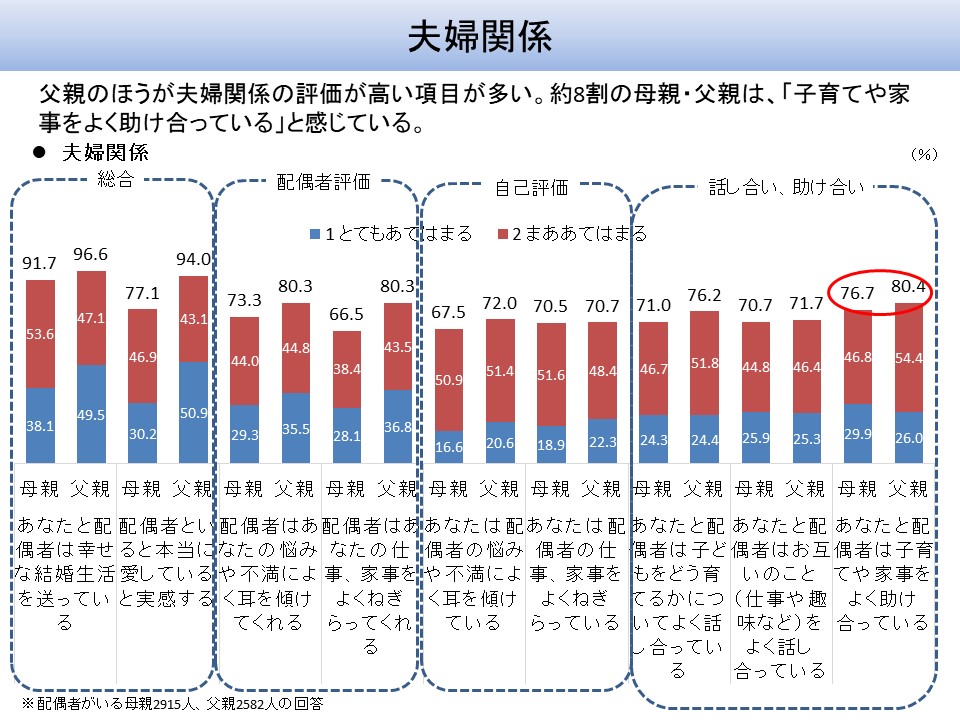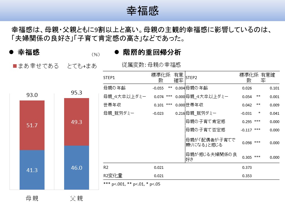 夫婦関係の良好さと子育て肯定感が、母親の幸福感と関連