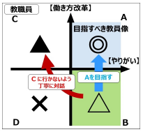 ◆献身的な教員像に依存しない改革の必要性、すなわちBからA象限への改善を例外なく促していくこと