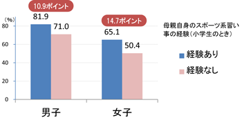図3. スポーツ活動の活動率(性別、母親のスポーツ系習い事の経験別)
