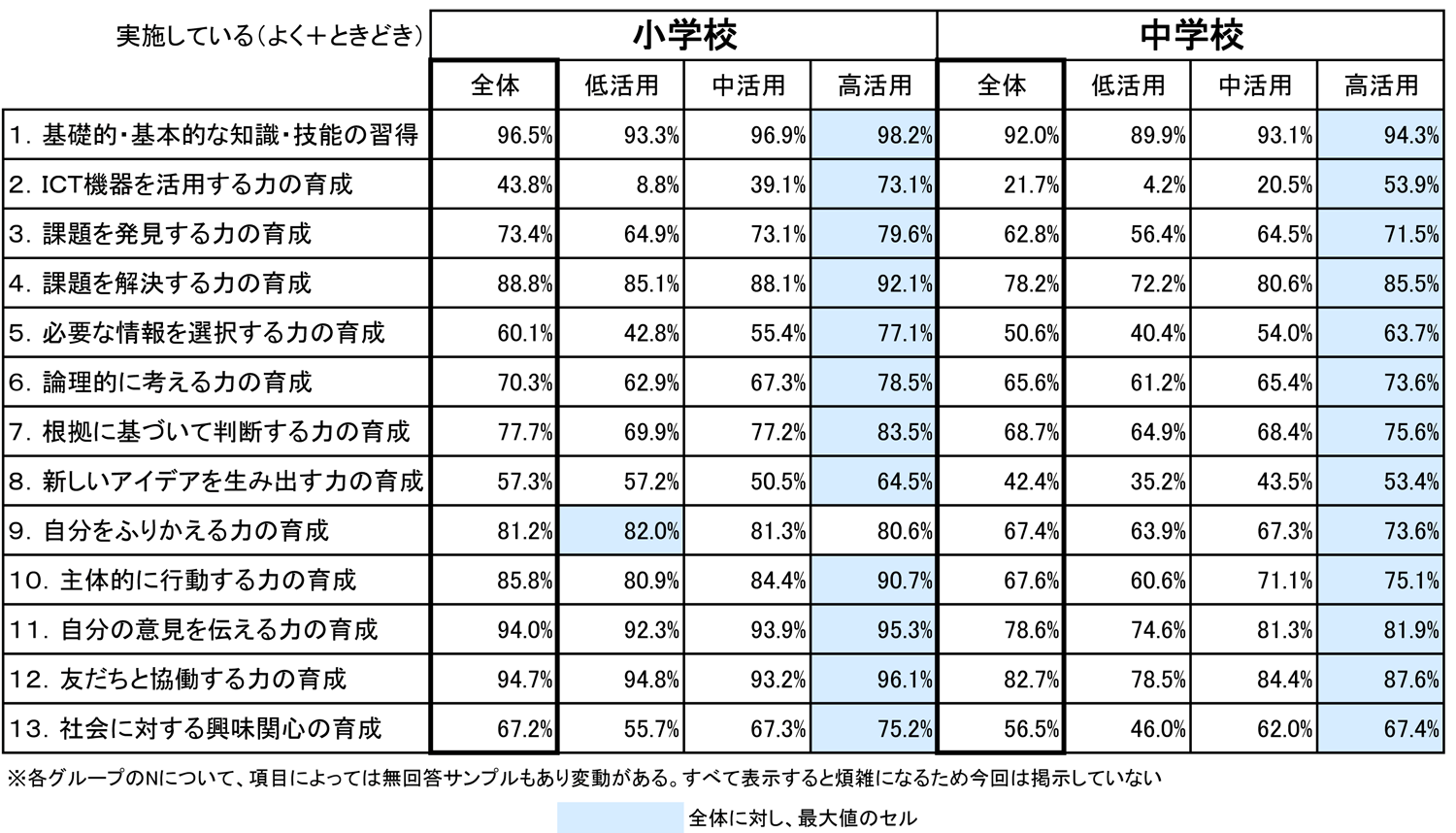 注9)もちろん、多様な力を身につけさせる授業を実施することによって、「高活用」となる可能性もある。