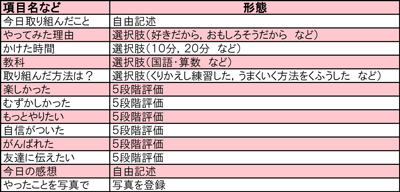 毎日の振り返り項目