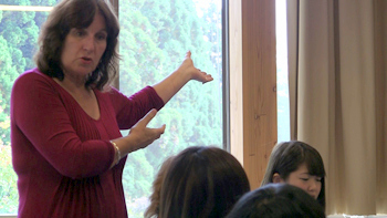 もちろん、授業の振り返りについても、学生たちは全て英語で議論していた。入学して4カ月目の現時点ではそれほど英語を話す能力が高くない学生も、議論に積極的な姿勢を見せており、授業の雰囲気はとてもよい。そんな雰囲気ができるように、円形の座席をつくって学生同士の和を生み出す工夫や、議論の中で適度なあいの手を入れる先生の技術も光る。