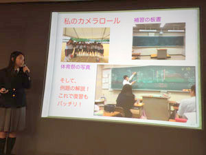 「この学校のICT教育ですが、厳しい制限がありません。これは、私たち生徒一人ひとりが、私たちに合った使い方を見つけて欲しいという、先生たちの思いから来ています。しかし、自由だからこそ、私たちが間違った使い方をしてはいけません。けじめをつけることが大切です」