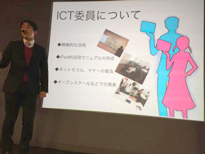 ICT委員はiPadなどのITツールの活用を研究し、iPad活用マニュアルを作成し、ネットモラルやマナーを普及させ、オープンスクールなどで発表しているという。先のSNS依存の問題では、ICT委員がゲームやSNSの利用について話し合い、依存していた生徒を正しく導いたという。