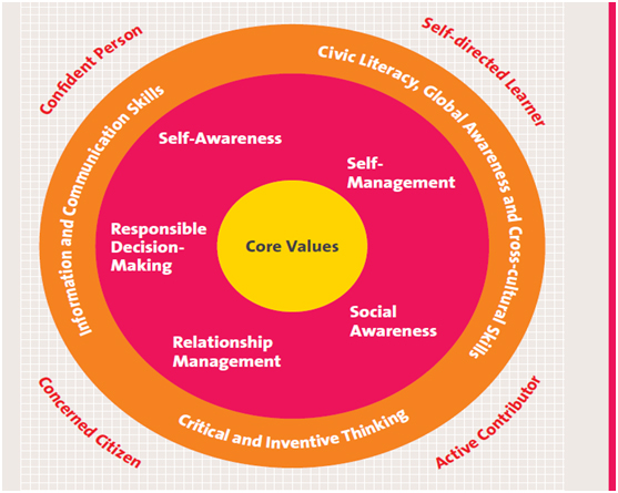 具体的な能力イメージについて、シンガポール教育省が提唱し、2010年以来教育改革を実行している「21世紀型スキル」の枠組を紹介します。RELCセミナーの冒頭で、シンガポール教育省・教育局局長から発表されたものです。
