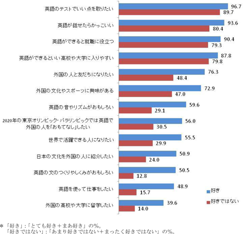 図2 英語に関する意識(中学生/「好き」「嫌い(好きではない)」別)