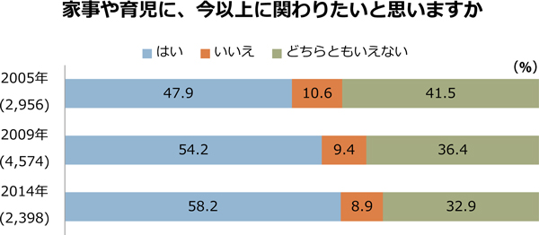 *1「イクメン」の定義:「イクメンとは、子育てを楽しみ、自分自身も成長する男性のこと。または、将来そんな人生を送ろうと考えている男性のこと」(厚労省イクメンプロジェクト HPより、2015/6/15)。