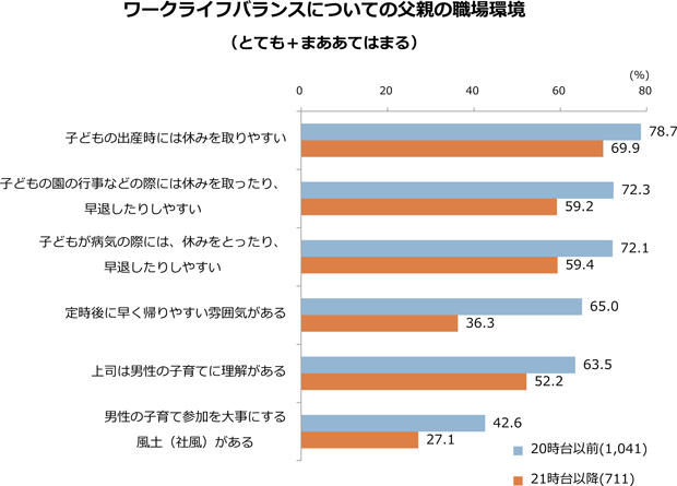 父親の子育てを応援する職場の風土は、帰宅時間の早さに関連している