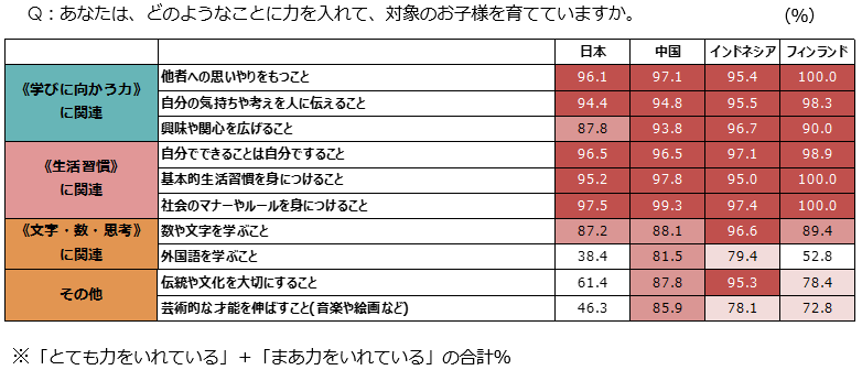 4か国の母親は、子育てで「学びに向かう力」を育むことを重要視している