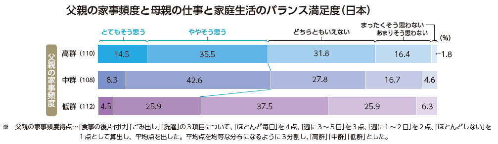 図7.共働き家庭の父親の家事頻度と母親の仕事と家庭生活のバランス満足度(日本)