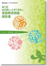 2013年3月に、「第1回 幼児期から小学1年生の家庭教育調査報告書」(全112ページ)を発刊しています。調査全体にわたる詳しい分析結果や、調査に関わった研究者・監修者によるコメント、調査票見本表が掲載されています。 以下から、PDFによるダウンロードができます。