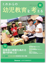 当研究所が実施した「第1回幼児教育・保育についての基本調査」からは、「教員、保育士等の質の維持、向上」が幼稚園・保育所ともに最大の課題としてあげられました。そのようなことを受け、今号では保育者が自らの保育を振り返り、気付きを得られるような「園内研修」をテーマにとりあげています。