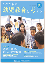 2009年夏号の特集では「幼保一体化と新しい幼児教育」をテーマに、白梅学園大学学長の汐見稔幸先生と同大学の子ども学部教授の無藤隆先生にご対談い ただきました。また、保育所の現状や園に向けての保護者の期待を調査データからご紹介するほか、公私、幼保ほか、さまざまなお立場の方から「幼児教育のこれから」についてご寄稿をいただきました。