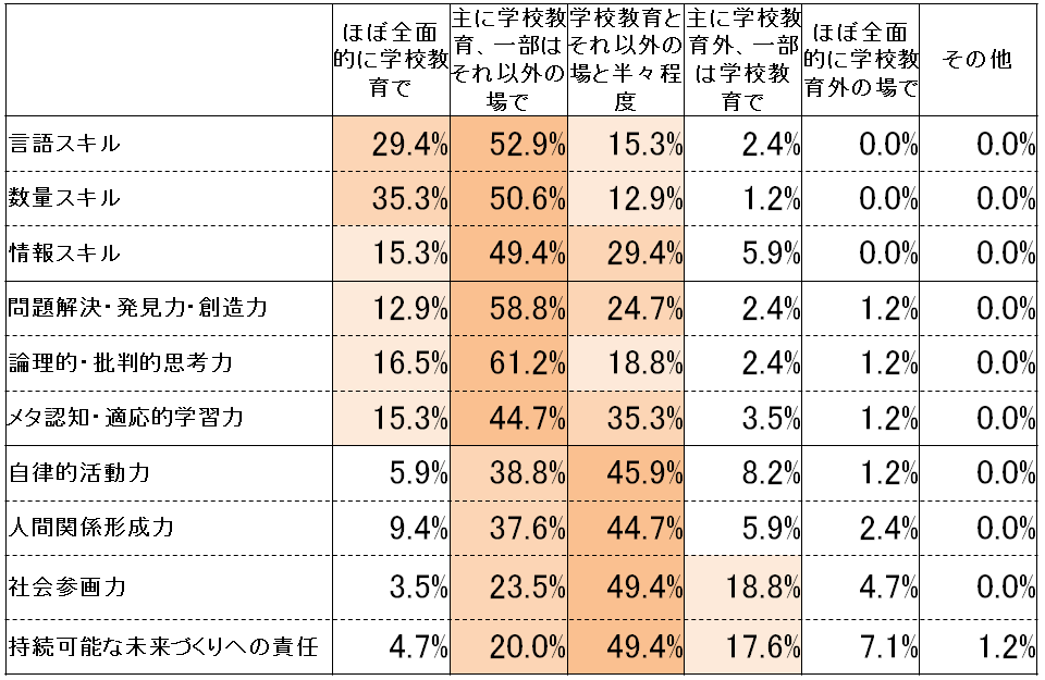 Q 「学校教育」の場で、子どもたちがこれからの社会を生きていくために大切な力(いわゆる「21世紀型能力」)をどの程度保障すればよいと思いますか。それぞれについて最も近いものに印をしてください。