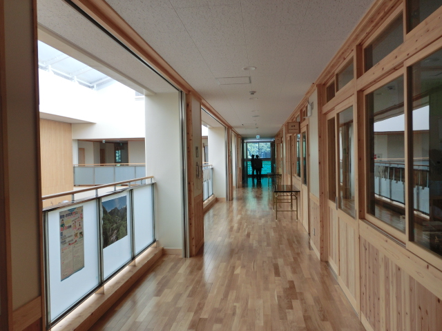 4キロ離れていた小中学校を統合し校舎を新築。ふんだんに用いられた木の香りが心地よく、開放感にあふれる。