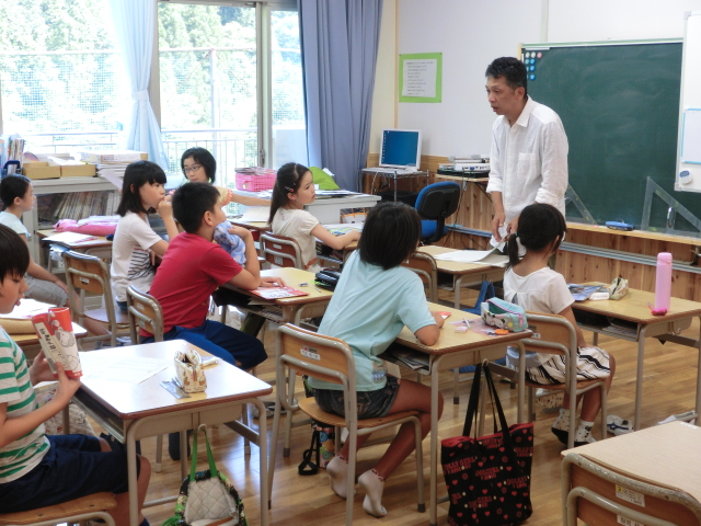 4年生の授業。現在2、3年生と5、6年生が複式学級だ。