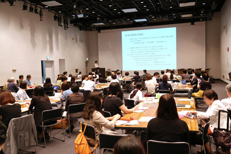 まず第1部では、イギリス・韓国・オランダ・スウェーデンの保育・幼児教育に関する研究者より、各国事情についての紹介がなされ、それを受けて日本の保育・幼児教育に関する研究者より、各国事情に対する感想とともに、改めて日本の保育の良さと課題についての提示がありました。この第1部のインプットを受けて、続く第2部では、来場者全員を8グループに分けて、グループディスカッションを行いました。そして第3部では、第2部のグループディスカッションで話し合われた内容を受けるかたちで、研究者によるパネルディスカッションが行われました。(注2)