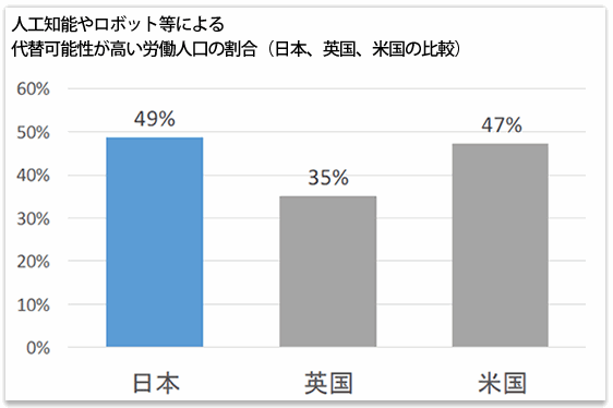 注)米国データはオズボーン准教授とフレイ博士の共著“The Future of Employment”(2013)から、また英国データはオズボーン准教授、フレイ博士、およびデロイトトーマツコンサルティング社による報告結果(2014)から採っている。