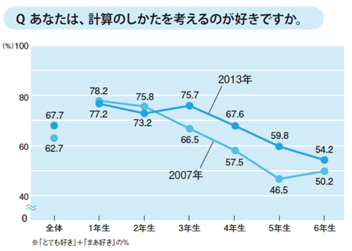 計算力(計算技能)は高まり、「計算のしかたを考えるのが好き」も増加