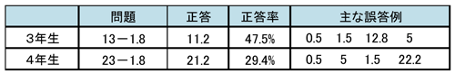 表3 3年生と4年生の計算力テストの結果(整数—小数)(2013年)