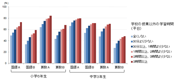 図1 全国学力・学習状況調査の平均正答率(学習時間別)
