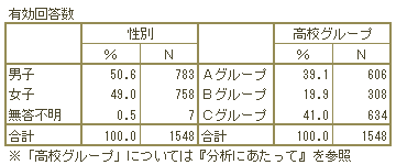 学校生活(授業、特別活動など)について/通っている高校について/小・中学生時の経験/高校選択について/学校外での生活について/友人関係について/自己意識、社会意識/進路や将来について/家庭について など
