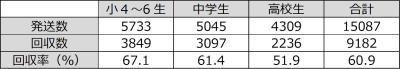 本調査は、東京大学社会科学研究所・ベネッセ教育総合研究所共同研究「子どもの生活と学び」研究プロジェクト(親子パネル調査)の特別調査として、プロジェクトモニターの小学4年生から高校3年生(9,182名)を対象に実施しました。