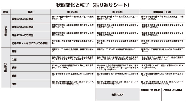 飯盛 私の場合、下のような振り返りシートを作成し、活用しています。学習目標にあたるところは提出されたレポートを見ながら私が評価し、行動目標にあたるところは生徒たちが自己評価します。