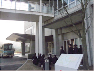 2階からジュースを飲む実験をする生徒たち 出典:飯盛氏提供資料