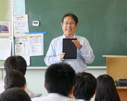 岐阜市立三輪中学校では、タブレット活用の3割を理科が占めています。それはなぜか? その理由を探るべく、理科を担当する加藤先生の授業を見学し、お話をうかがいました。(2016年11月22日)