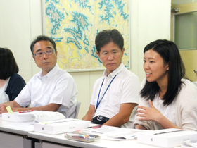 見学した後、先生方から日ごろの様子や教材活用の感想を教えていただきました。