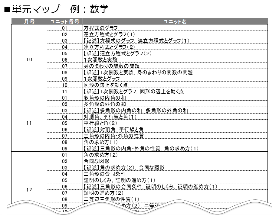 「授業の進度」と「教材」の関連がわかると生徒への指示が容易になる。こうした要望から、3月までの教材(5教科)の学習内容を一覧化。教員と生徒がともに使うことで、授業と教材の関連をつかみやすくする。