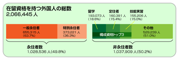 地域によって状況は異なるが、日本全体で見れば日本の在留資格を持つ外国人は200万人を超えている。47都道府県のうち200万人以上の人口がいる都道府県は17県しかないと聞けば、「200万人」という数字が決して少なくないということがわかる。