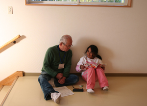地域の支援者と一緒に読書をする外国ルーツの子ども(磐田市)