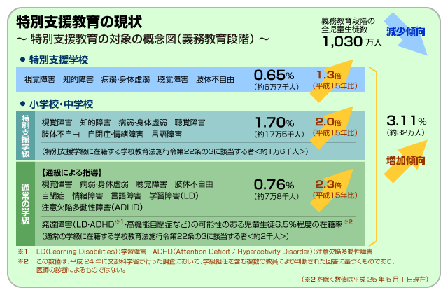 参考: 参考:「特別支援教育の現状と課題」文部科学省 初等中等教育局 特別支援教育課(平成26年12月4日)