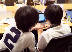 夏季プログラムは、数日間をかけて行われる。8月9日に日本マイクロソフト社で行われた「授業をうける準備をしよう(応用編)」という授業では、PCを活用した配付資料の読み上げ機能やノートの取り方についてスカラーたちが学んでいた。この授業の後に、マイクロソフト社の社員による講義「IoTとクラウドコンピューティング」が用意されており、スカラーたちは学校の授業形式で表題の内容を学ぶことができる。スカラーたちは一見、どの小学校にもいるような子どもたちだが、聴こえをサポートする機器の貸し出しの要否を問われると、バラバラと手が挙がる。