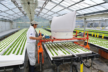 京丸園には従業員が70人おり、そのうち24人が障害者。主に水耕栽培を進めながら、園主の鈴木厚志さんを中心に農福連携に取り組んでいる。