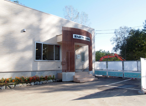 九神ファームめむろ 嵐山工場の外観。施設奥では、拡張工事が進められている