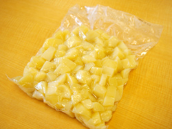 加工処理の終わったジャガイモ。袋ごとボイルするだけでお惣菜に使える