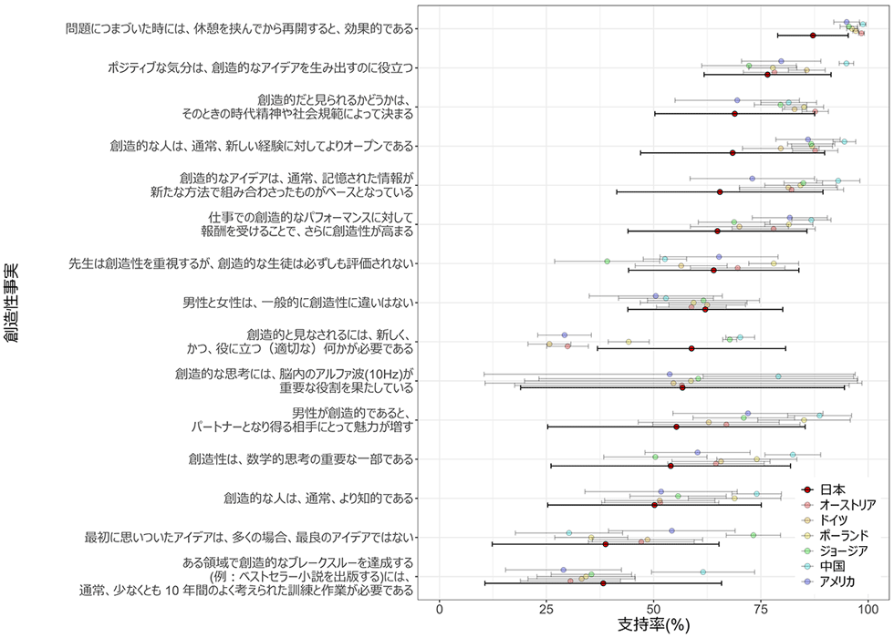 日本人は他国に比べ、創造性をどう認識しているのか?3,101名を対象にした創造性神話・事実の調査より