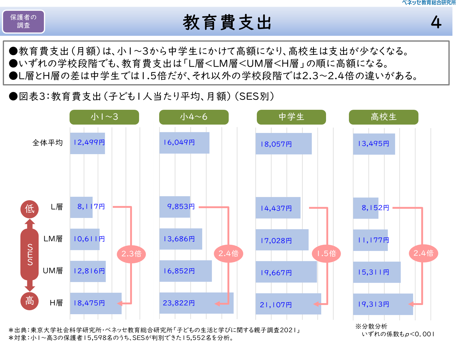 SESによる教育費支出の違い—H層はL層の2倍支出